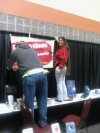 So, as Sunday came close to an end, I was sitting in the booth ringing up a credit card sale and Sam Morton (author of the YA novel BETRAYED) walks up, stops, and with a serious look on his face he says, “You know, when you get in the bathroom and have to go really bad is NOT the time to discover you have your underwear on backwards.” I laughed so hard I snorted, like four or five times. I honestly didn’t think I could stop laughing. And bless his heart, his day didn’t get any better. He texted me later to tell me he had made it 50 miles out of Decatur , headed home, and he had a blow out and had been waiting for the repair truck for over an hour, and guess what…he had to pee. But he was confident that as soon as he dug his thingy out of his backward drawers the truck would arrive with spotlight glaring and lights flashing.