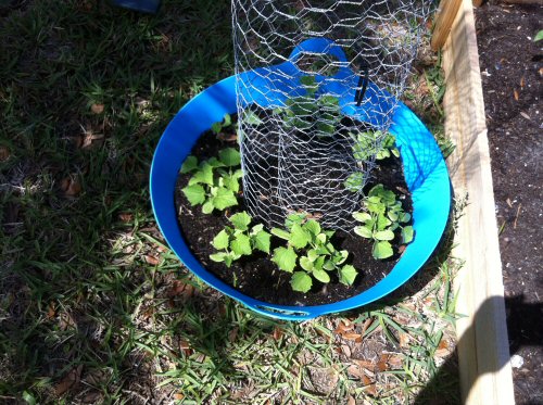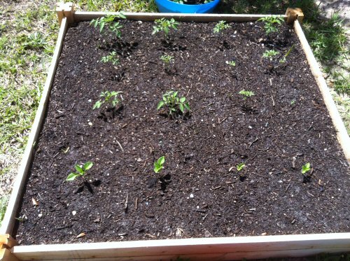 Pink means carnations and cherry tomatoes. Blue means super Serrano peppers. |