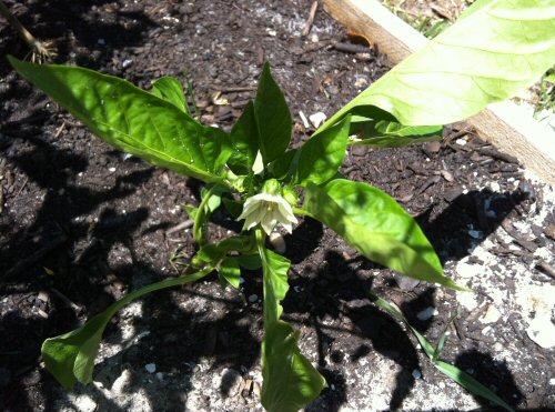 This is the first bloom on one of the sweet pepper plants I started from seed. I am seeing several more buds, but this was too pretty not to share. |